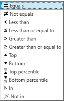 Anwendungsart des Filterkriteriums: z.B. «Gleich» dem eingegebenen Kriteriums / «Kleiner» als das eingegebene Kriterium / etc