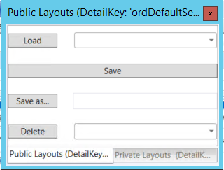 Wenn dies ein neues Layout ist, muss ein Layout Name bei «Save as…» eingegeben und gespeichert werden. Mit «Load» kann man bereits vorhandene Layouts laden und mit «Delete» vorhandene Layouts löschen.